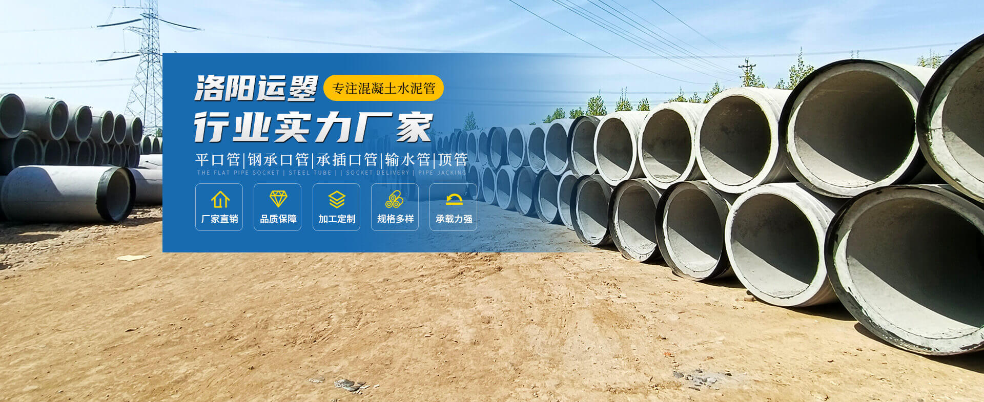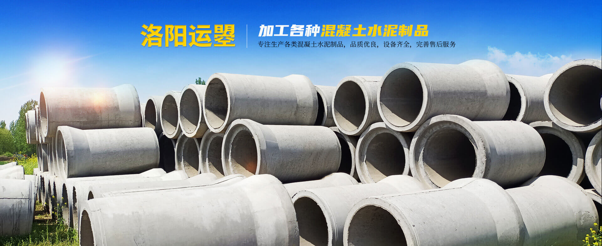 - 洛阳运曌建筑材料有限公司专于从事水泥制品开发、制作、生产、销售、工程服务为一体的综合性企业。主要生产钢筋混凝土排水管、钢承口顶管、承插管、平口管、雨污井盖、路沿石、水泥预制板、仿木围栏护栏系列、畜牧系列等混凝土水泥预制品?! ∥夜旧母纸罨炷僚潘苁且谰葜葱斜曜糋B/T11836-2023生产检验、拥有三条悬辊工艺生产线;型号300-3000;年生产能力达30000米左右,质量是企业之本.........了解更多>>